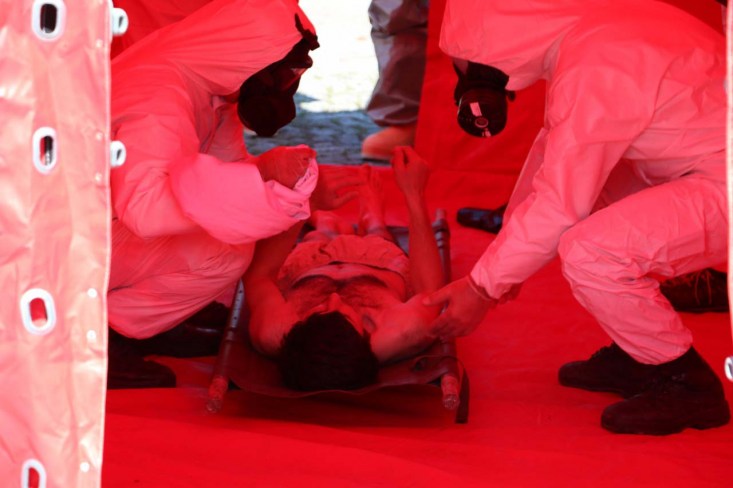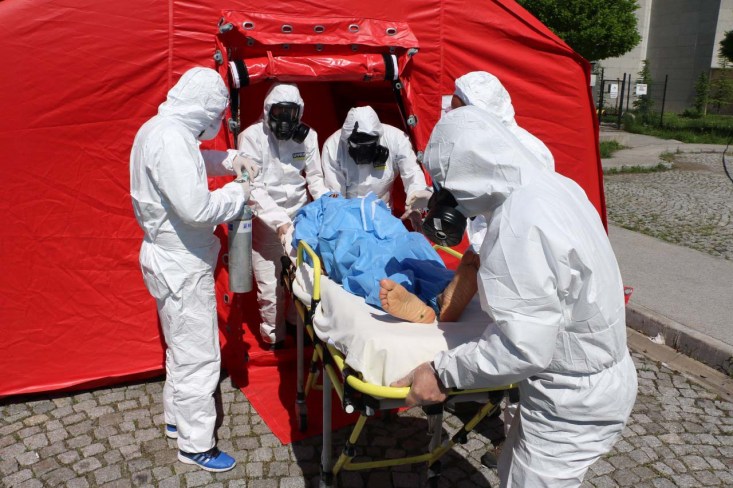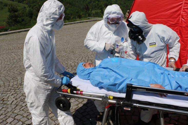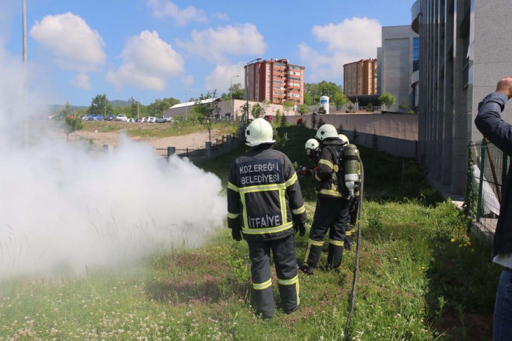 Zonguldak'ın Ereğli ilçesi Devlet Hastanesinde sabah saatlerinde tatbikat düzenlendi. Gerçeği aratmayan tatbikatta, kimyasal patlamada yaralanan iki yaralı, ekiplerin olay yerinde yaptığı müdahalenin ardından Devlet hastanesine getirilerek tedavi altına alındı. Tatbikatta AFAD, UMKE, İlçe emniyet Müdürlüğü, itfaiye birimleri hazır bulundu.