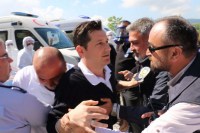 bağlı olarak hastane acil önünde bekleyen yaralı yakınlarına Afet Planı Başkanı