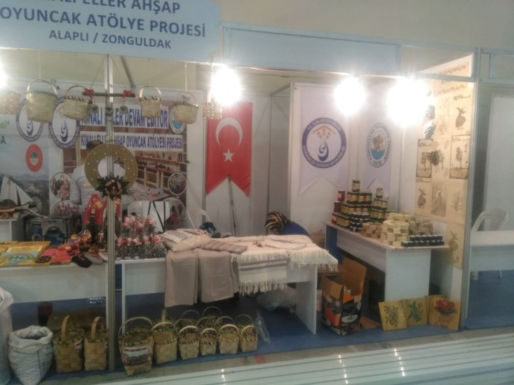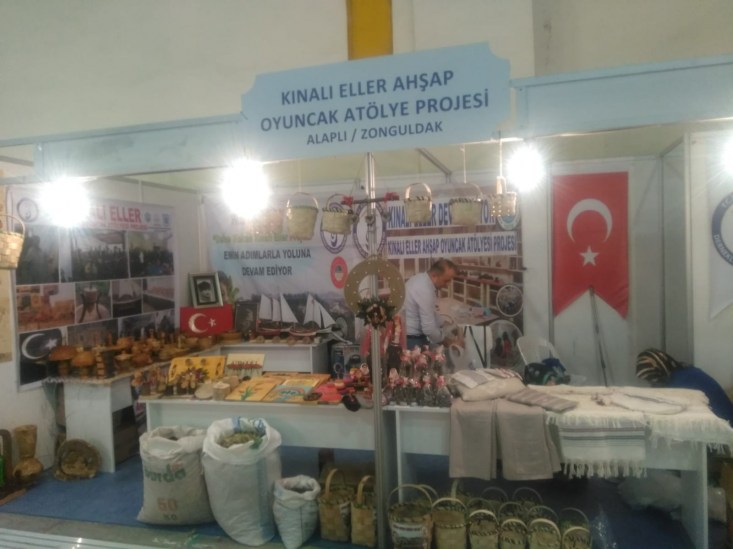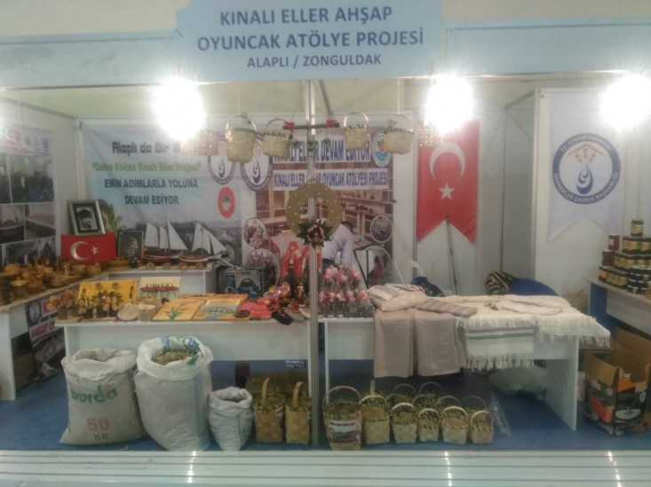 Zonguldak'ın Alaplı ilçesine bağlı Hasanlı Köyü Aşağı Abacılar Mahallesi Kalkındırma Derneğinin İçişleri Dernekler Dairesi Başkanlığı tarafından desteklenen KINALI ELLER AHŞAP OYUNCAK ATÖLYESİ PROJESİ adlı proje kapsamında bu yıl 9.Düzenlenen YÖREX Yöresel Ürünler Fuarına katıldılar.