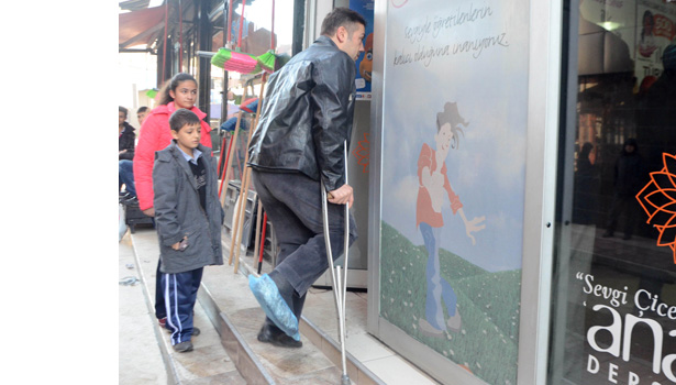 kazasında ayağı kırılmış. Koltuk değnekleriyle dershaneye gelen GÜLEÇ, "Çocuklarımı