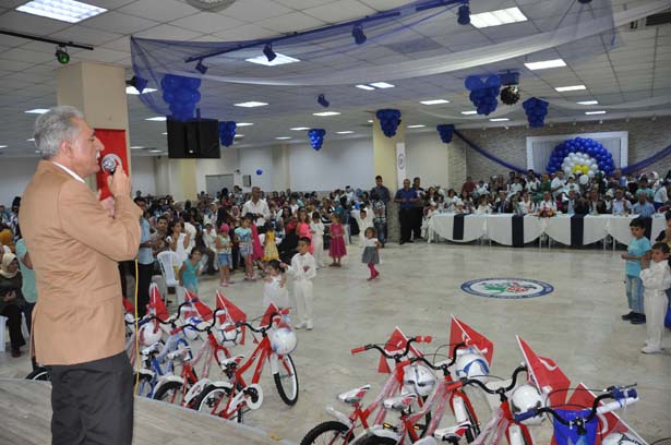 Başkan Uysal ve eşi Sevim Uysal, sünnet çocuklarıyla hatıra fotoğrafı çektirdi. Etkinlikte tavanda hazırlanan balonlar çocukların üzerine düşürüldü. Ereğli Müftülüğü Din görevlileri mevlit okudu. Sünnet olarak erkekliğe adım atacak çocuklara birer bisiklet armağan edildi.