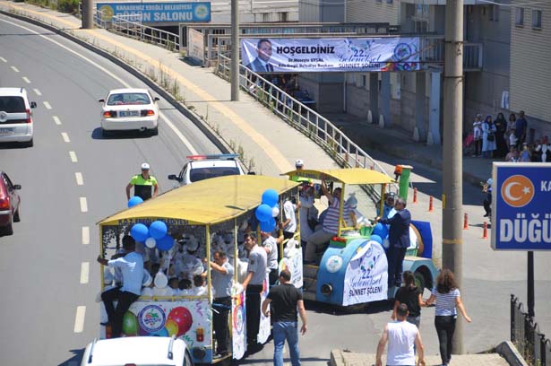 Ereğli Belediyesi'nce 22.'si düzenlenen Sünnet Şenliği etkinliği kapsamında, sünnet kıyafeti giymiş çocukların katılımıyla Ereğli Bozhane mevkiinden etkinliğin düzenlendiği Ereğli Belediyesi Düğün Salonu'na dek konvoy düzenlendi.
