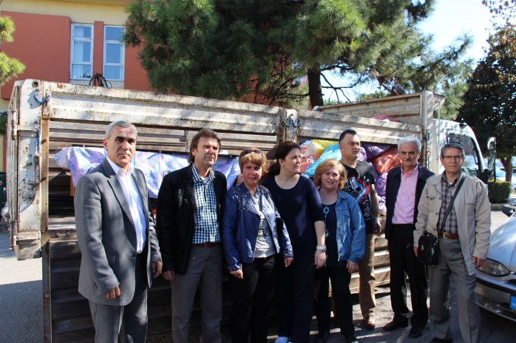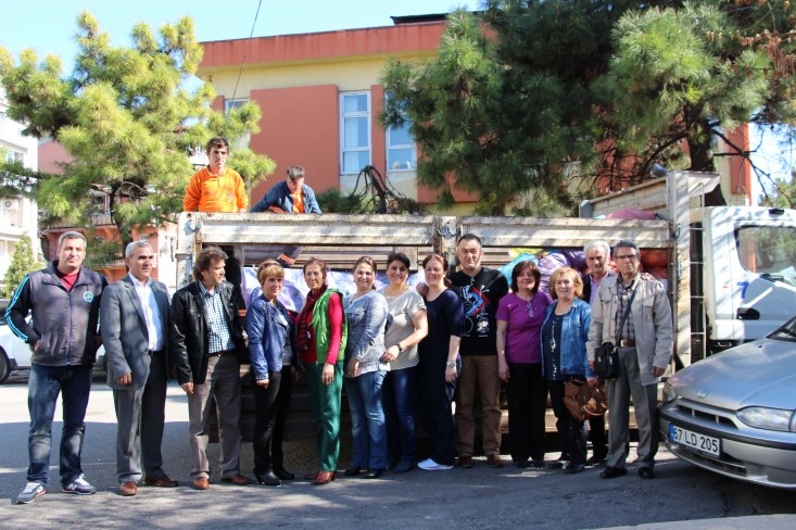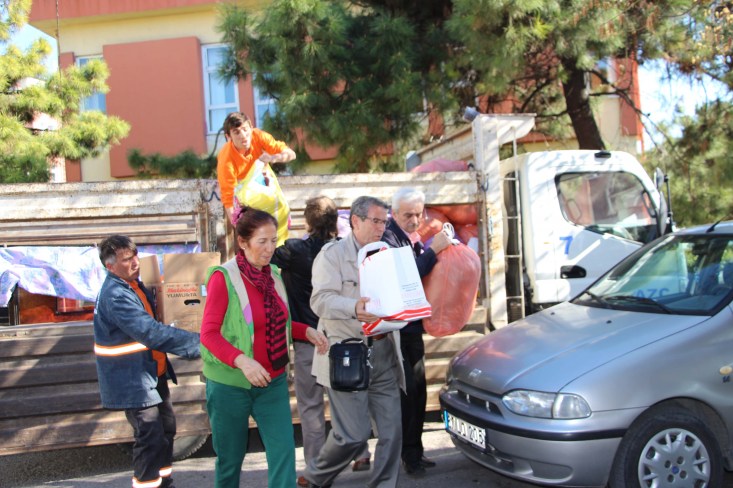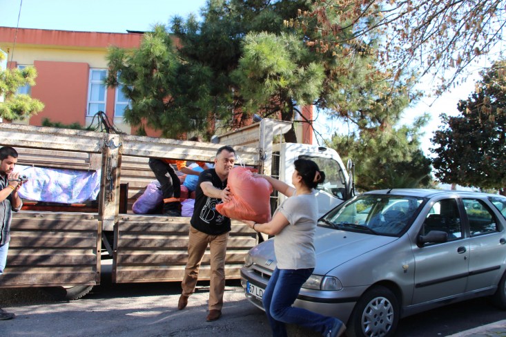 Öztürk ve Bülent Akçakese liderliğinde mahalle sakinlerinden toplanan bir kamyon eşya Sevgi Çemberi'ne getirilerek, teslim edildi.