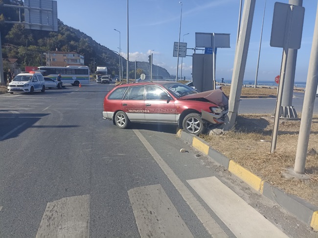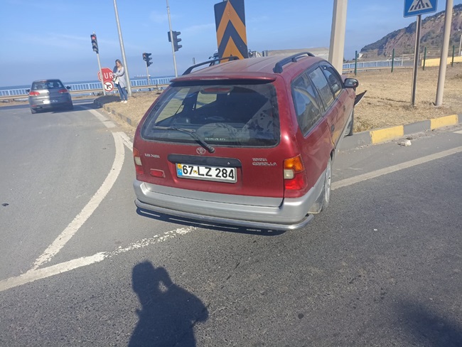Karadeniz Ereğli ilçesinde kırmızı ışıkta geçen sürücü kazaya sebep oldu. Kazada biri çocuk 3 kişi yaralandı.