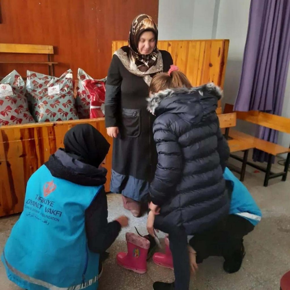Zonguldak'ta kış bayramı projesi doğrultusunda hayırseverlerin destekleriyle ihtiyacı olan öğrencilerin bot ve mont ihtiyaçları karşılandı.