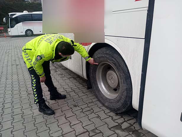 Trafik ekipleri tarafından 100.yıl Terminalinde kış lastiği uygulaması yapıldı. Uygulama kapsamında lastiğinin derinliği 2 milimetre altında olan araçların yola çıkması izin verilmezken, bazı araçlara ise 773 TL para cezası kesildi.