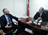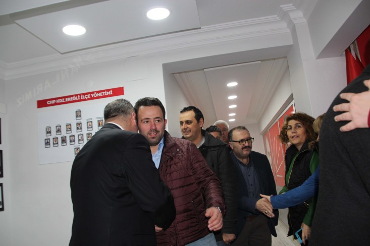 Keleş ekip arkadaşlarıyla birlikte, siyasi parti temasları kapsamında günün ilk ziyaretini CHP Ereğli İlçe Başkanı Şerif Sertan Ocakcı'ya yaptı.