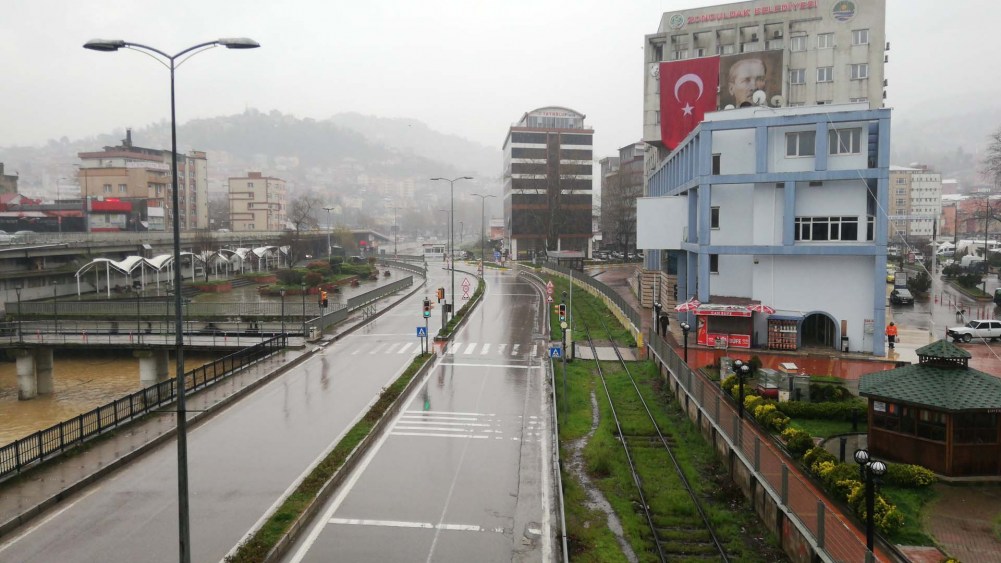 Zonguldak'ta sokağa çıkma kısıtlaması nedeniyle sokaklar boş kaldı. Ekipler kentin giriş çıkışlarında yaptıkları kontrollerde izin belgesi olmayanların geçişine izin vermedi.