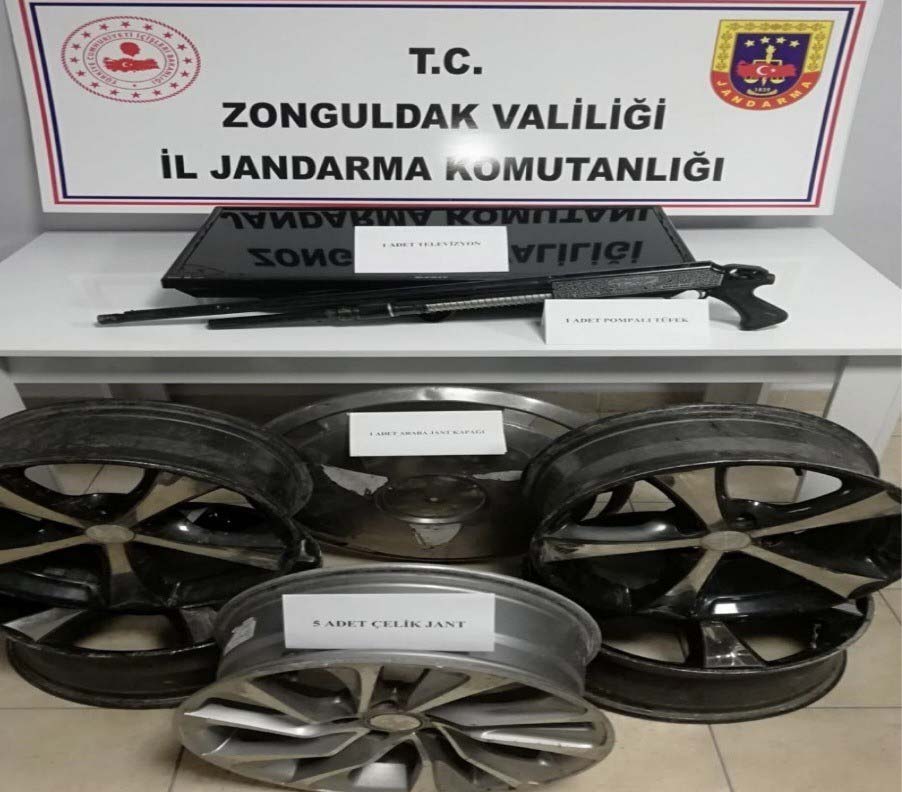 Bir iş yerine giren 2 şüpheli şahıs 1 adet av tüfeği, 1 adet plazma televizyon ve 5 adet çelik jant çaldı. İş yeri sahibinin şikayeti üzerine jandarma ekipleri tarafından geniş çaplı soruşturma başlatıldı. 2 şüpheli şahıs iş yerinden çaldıkları malzeme ile ekipler tarafından kıskıvrak yakalandı. Olayla ilgili Cumhuriyet Başsavcılığına verdikleri ifade sonrası mahkemeye sevk edilen 2 şahıs tutuklanarak cezaevine gönderildi.