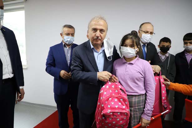 Ardından Vali Tutulmaz yönetimindeki protokol üyeleri minik öğrencilere kırtasiye araçlarını teslim ederek yeni eğitim öğretim yılında başarılar diledi.