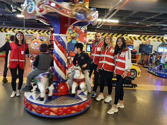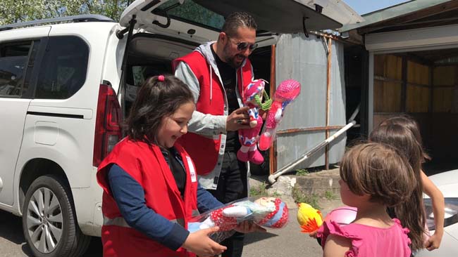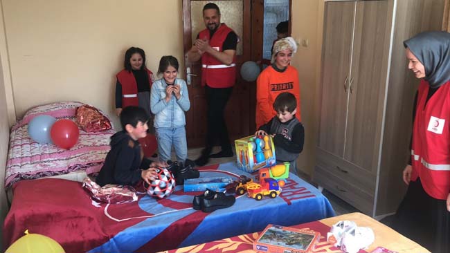 Türk Kızılayı Kdz. Ereğli Şube Başkanı Kürşat Yağız, yönetim kurulu üyeleri ve Genç Kızılay gönüllüleri ile birlikte ilçede tespit edilen bir ailenin tüm eşyalarını karşıladı, çocukları baştan aşağı giydirip gıda ve nakdi yardımda bulundu. Kızılay olarak göreve geldikleri günden bu yana tespit ettikleri ihtiyaç sahibi ailelere ellerindeki imkanlar doğrultusunda yardımlarda bulunduklarını anlatan Yağız, ilçede ihtiyaç sahibi bir aileye yapılan yardımlar sonrası çocukların yüzlerinde oluşan mutluluğun tarif edilemeyecek kadar güzel olduğunu söyledi. Başkan Yağız konuşmasında “Ereğli ilçemizde 5 çocuğu bulunan bir ailenin maddi imkansızlıklar nedeniyle sıkıntı çektiği bilgisi gelince evlerine konuk olduk ve ihtiyaçlarını tespit ettik. Ailenin evinde beyaz eşya dahil mobilya, koltuk gibi bir çok eşyası yoktu. Çocuklar yere serilen yorgan yada battaniyelerinde üzerinde uyumaya çalışıyordu. Kızılay olarak hemen harekete geçip yaklaşık 1 hafta gibi kısa bir süre içerisinde 7 kişilik ailemizin evde neye ihtiyacı varsa hepsini karşıladık. Çocukları baştan aşağı giyindirdik. Gıda ve nakdi yardımlarda bulunduk. Tabi biz evi yenilerken Genç Kızılay gönüllüsü arkadaşlarımız çocukları alıp oyun parkına götürüp onları eğlendirdi. Eve döndüklerinde yeni yataklarını, dolaplarını ve eşyalarını görünce çok büyük bir mutluluk yaşadılar. O anda çocukların gözlerinde oluşan mutluluğu tarif etmek gerçekten çok zor. Türk Kızılayı olarak böyle bir yardıma vesile olduğumuz için tüm yönetim kurulu üyelerimiz ve Genç Kızılay gönüllüsü arkadaşlarımızla birlikte çok mutlu olduk. Ben buradan 7 kişilik ailemizin ihtiyaçlarının karşılanmasında bizlere destek olan Baydanlar Halı sahibi Emrah Baydan, Karaca AVM sahibi Hasan Toprak, Öztürk Eczanesi sahibi Hüseyin Öztürk, Ateşler Spot Mağaza sahibi Ahmet Ateş, Ada Çamaşırları mağazası sahibi Tamer Tanyıldız, Japon Pazarı sahibi Arif Çalışkan ve Pizzante pizza sahibi Hakan Güner’e çok teşekkür ediyorum. Kızılay olarak her zaman ihtiyaç sahibi insanlarımızın yanında olmaya, çocukları mutlu etmeye devam edeceğiz” dedi.