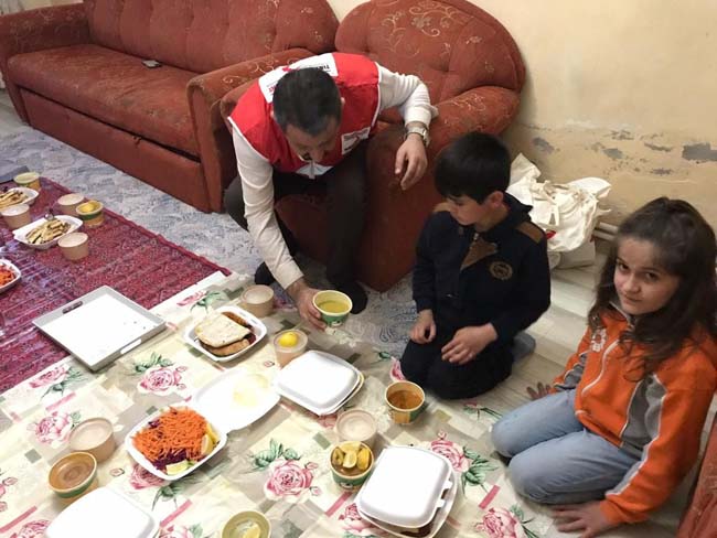 Zonguldak’ın Ereğli ilçesinde Türk Kızılayı Kdz. Ereğli Şube Başkanı Kürşat Yağız, Kızılay gönüllüleri ile bu akşam iftarda bir ailenin evine konuk oldu. Başkan Yağız ve Kızılay gönüllüleri çocuklara giysi ve çeşitli oyuncaklar hediye etti.