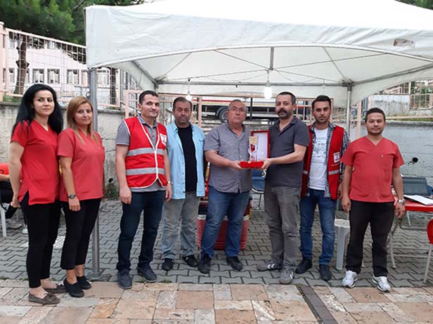 Zonguldak'ın Çaycuma ilçesinde 2003 yılından bu yana sürekli kan veren Hamza Başören’e Kızılay plaket verdi.