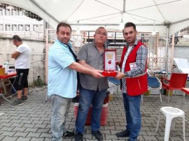 Haftanın belirli günlerinde Seka caddesi Barbaros Kutlutaş Ortaokulu önünde kök hücre ve kan bağışı çadırı kuran Kızılay, ödüllerini dağıttı. Zonguldak Kan Bağış Merkezi Koordinatörü Özcan Güler, Zonguldak Kızılay Kan Merkezi Doktoru Murat Babalık ve Kızılay Çaycuma Temsilcisi Raci Sönmez önderliğinde 55 kişiye bronz, gümüş, altın madalya ve plaket sahiplerini buldu. 47’nci kan bağışından dolayı plaket alan Hamza Başören, duygularını şu şekilde dile getirdi; “2003 yılından bu tarafa sürekli kan veriyorum. Bronz, gümüş ve altın madalyalarımı aldım. Bu en son verdiğim kan bağışımla 47’ye tamamladım ve bugün de plaketimi aldım. Her şeyden önce insan sağlığı için aynı zamanda da sağlık açısından çok önemli olan aktivite. İnsanın kan vermesi için öneride bulunuyorum. Kanın hiçbir zaman fabrikası yoktur, insandan başka. Her duyarlı insanında kan bağışı yapmasını temelli ediyorum” dedi.