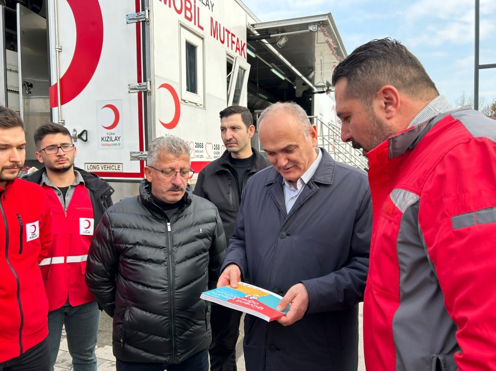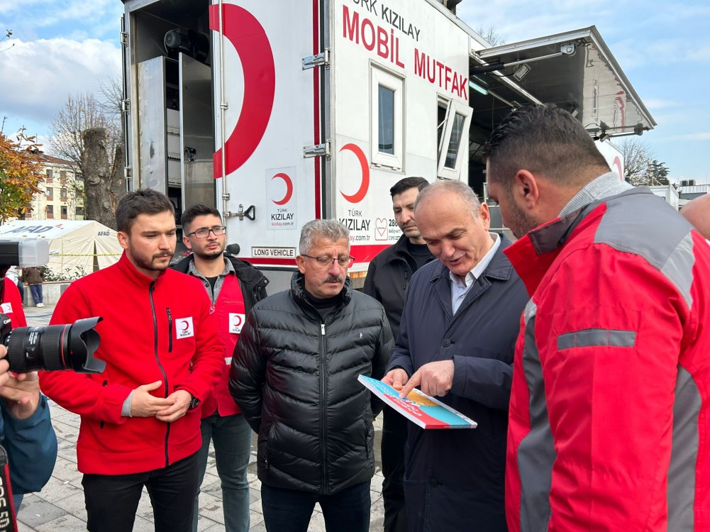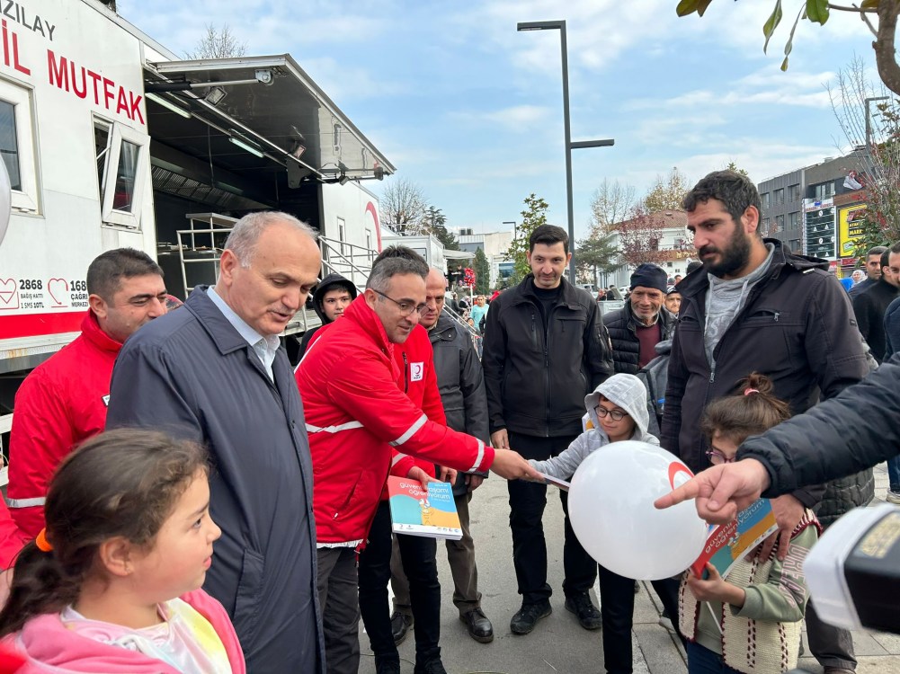 Türk Kızılayı Kdz. Ereğli Şube Başkanı Kürşat Yağız, Düzce Belediye Başkanı Faruk Özlü ve Kızılay gönüllüleri ile birlikte depremden etkilenen çocuklara moral vermek için çeşitli hediyeler verdi.