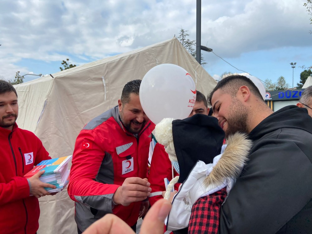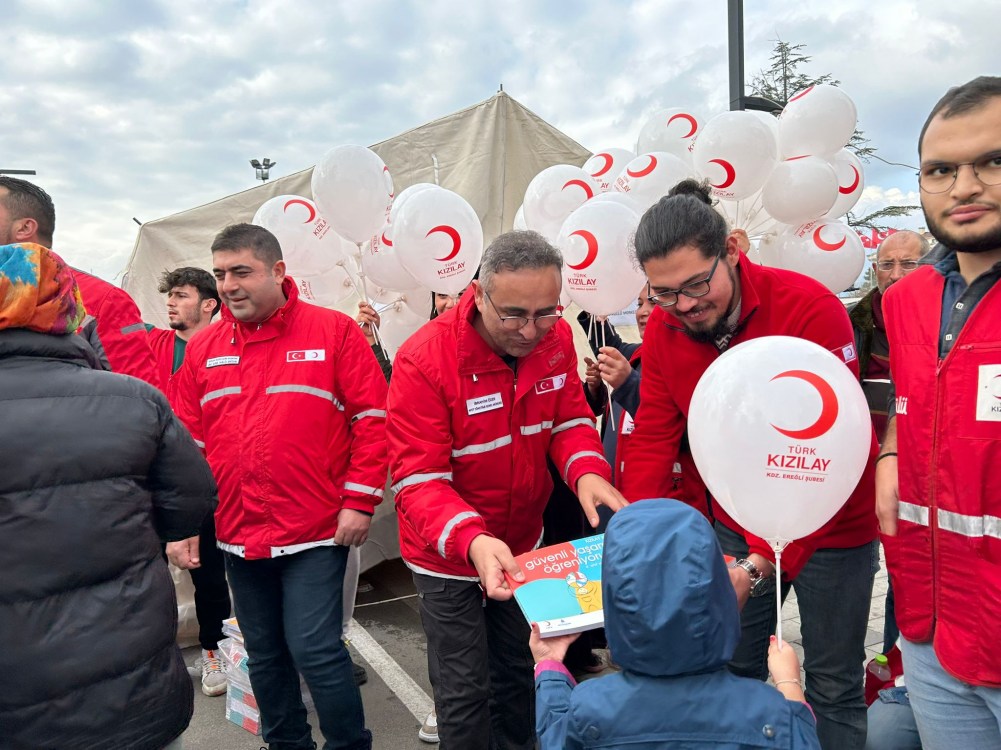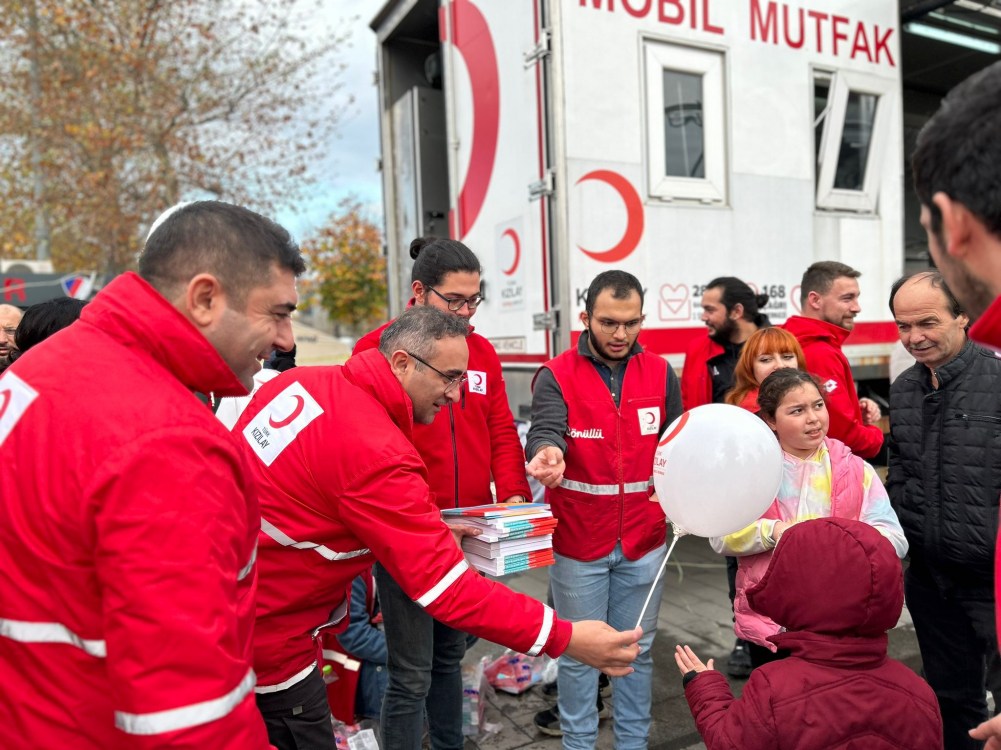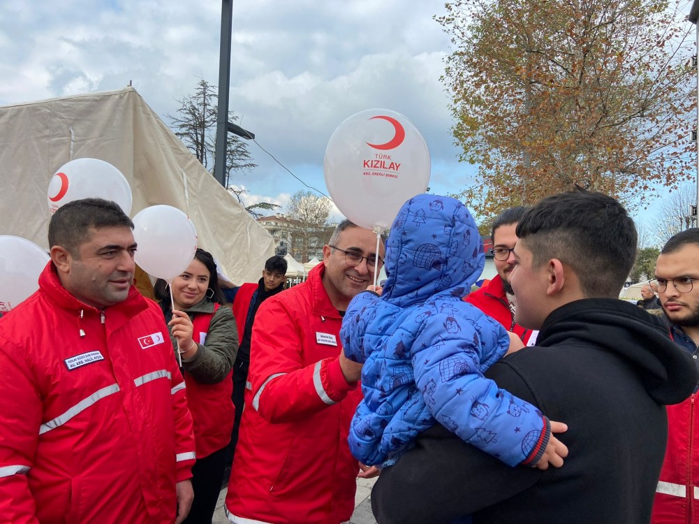 Türk Kızılayı Kdz. Ereğli Şube Başkanı Kürşat Yağız ile Kızılay gönüllüleri depremzedelere yönelik yemek, su ve ekmek dağıtımının ardından çocuklara yönelik etkinlikler yapmaya başladı. Başkan Yağız, Düzce Belediye Başkanı Faruk Özlü ve Kızılay gönüllüleri ile birlikte mahalleleri gezerek depremden etkilenen çocuklara çeşitli hediyeler vererek morallerini düzeltmeye çalıştı. Başkan Yağız yaptığı açıklamada “Düzce’nin Gölyaka ilçesi merkezli 5.9 şiddetinde ki depremin yaşandığı ilk andan itibaren Kızılay Kdz. Ereğli şubesi olarak bölgedeyiz. Depremden etkilenen ve evlerini terk etmek zorunda kalan ailelerimize Kızılay gönüllülerimiz ile birlikte sıcak çorba, ekmek, yemek ve su dağıtımlarımız devam ediyor. Dünde depremden etkilenen çocuklarımıza moral olması açısından çeşitli etkinlikler yapmaya başladık. Düzce Belediye Başkanımız Faruk Özlü ile birlikte mahalle mahalle gezip depremden etkilenen çocuklarımıza balon ve oyuncaklar dağıttık. Genç gönüllülerimiz çocuklara yönelik çeşitli etkinlikler gerçekleştirerek morallerini yükseltmeye çalıştılar. Türk Kızılayı Kdz. Ereğli Şubesi olarak tüm gönüllülerimiz ile birlikte ihtiyaç duyulan her noktada görev almaya ve halkımızın yanında olmaya devam edeceğiz” dedi.