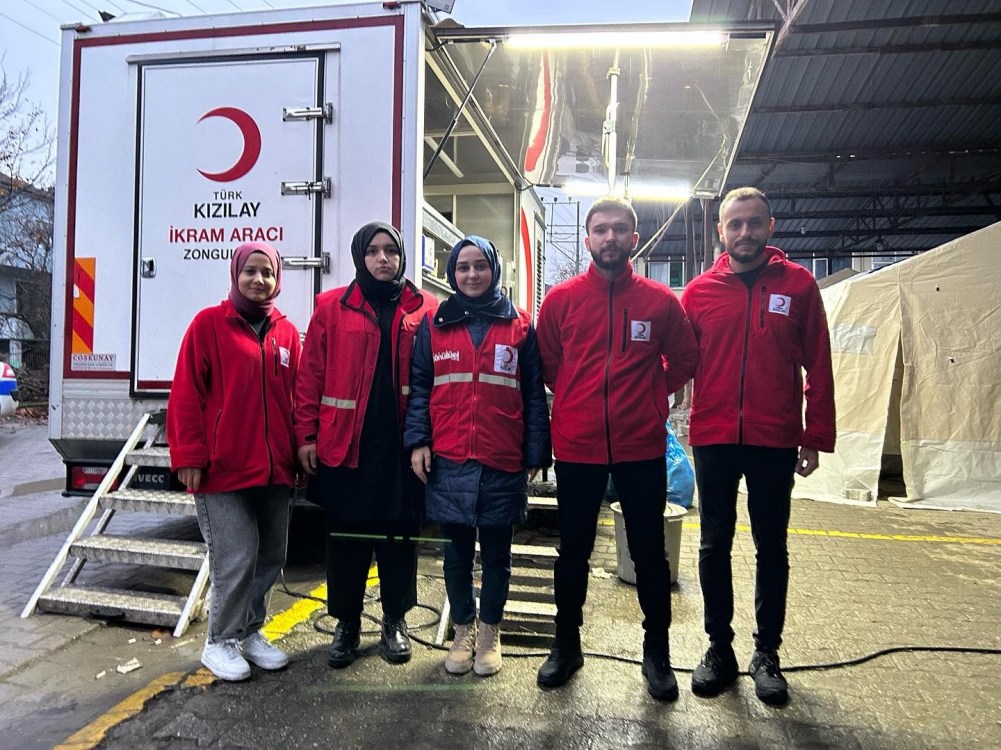 Türk Kızılayı Kdz. Ereğli Şube Başkanı Kürşat Yağız, gönüllüler ile birlikte Düzce’nin Gölyaka ilçesi merkezli 5.9 şiddetindeki depremin yaşanmasının ardından sabah saatlerinde Düzce’ye yardıma gitti. Başkan Yağız ve beraberindekiler evlerine girmeyen vatandaşlara sabah saatlerinde ilk olarak çorba ve ekmek dağıtımı gerçekleştirdi. Kızılay tarafından kurulan seyyar yemekhanelerde gün boyu vatandaşlara ekmek ve yemek dağıtımı yapan Türk Kızılayı Kdz. Ereğli Şube Başkanı Yağız ve beraberindekiler yardımlara dünde devam etti. Başkan Yağız konuya ilişkin olarak yaptığı açıklamada “Düzce’de meydana gelen depremden hemen 1-2 saat sonra Kdz. Ereğli’de hazırladığımız 2 bin kişilik çorba ve diğer yardım malzemelerimiz ile bölgeye hareket etti. Burada Kızılay Genel Merkezi tarafından gönderilen seyyar yemekhanelerde vatandaşlarımıza ekmek ve çorba dağıtımı yaptık. Yardımlarımız depremin olduğu günden itibaren dün ve bu günde halen devam ediyor. İç İşleri Bakanımız Süleyman Soylu başta olmak üzere tüm yetkililer ile birlikte koordineli bir şekilde ekmek, yemek, su ve çay dağıtımlarımız devam ediyor. Bölgede halen evlerine giremeyen vatandaşlarımız var. Bu vatandaşlarımıza yemek verilmesi için ihtiyaç duyulan ekmek ve kumanya için Kdz. Ereğli’de sağ olsun hayırseverlerimizin katkıları oldu. Ancak ihtiyaç halen devam ediyor. Yardımda bulunmak isteyen, bölgedeki vatandaşlarımıza dağıtılacak yemek için lazım olan kumanya ve ekmek ihtiyacı için hayırseverler Türk Kızılayı Kdz. Ereğli Şubesi’ne ulaşabilirler. Başta deprem bölgesinde görev alan gönüllülerimiz olmak üzere, yardımda bulunan ve bulunacak olan tüm hayırseverlerimize teşekkür ediyorum. Düzce başta olmak üzere çevre ve il ve ilçelerde depremden etkilenen vatandaşlarımıza bir kez daha geçmiş olsun dileklerimizi sunuyorum” dedi.