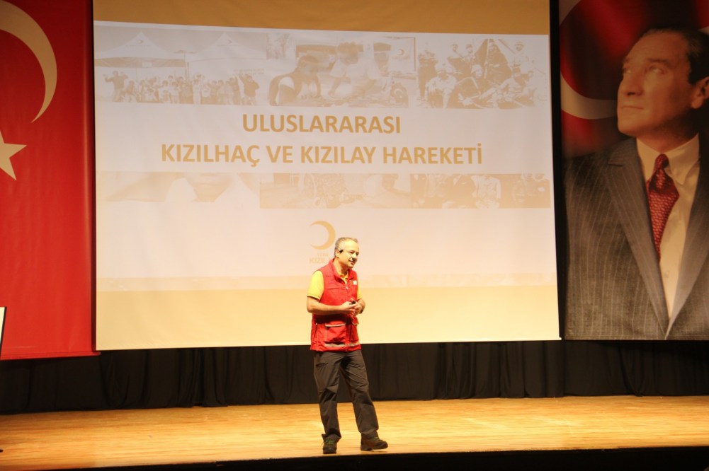 Konuşmacı olarak konferansa katılan Kızılay Akademi Başkanlığı Eğitim Planlama ve Uygulama Uzmanı Çağrı Çakır, savaşlar nedeniyle ortaya çıkan Kızılay’ın 1868’de kurulduğunu ve günümüzde ‘Kızılay’ denildiğinde genel olarak akıllara kan bağışı ve çadırların geldiğini söyledi. Kızılay’ın faaliyetlerinin çok daha geniş yelpazede olduğunu aktaran Çakır, 2030 stratejik planlamaları hakkında da katılımcılara bilgiler verdi.