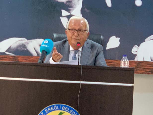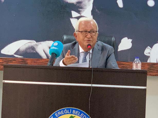 Karadeniz Ereğli Belediyesi Ekim Ayı Olağan Meclis Toplantısı Birinci Oturumunda yaptığı gündem dışı konuşmada, daha başından beri halkın suyunu kesmeye çalışan Erdemir’e karşı hukuk mücadelesi başlattıklarının alrını çizd.