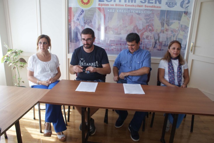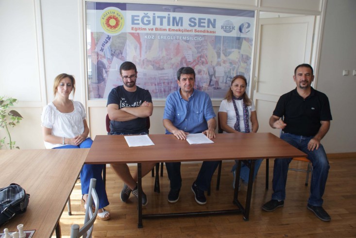 Eğitim Sen Karadeniz Ereğli Şube Temsilcisi İbrahim Koç,2014-2015 eğitim öğretim yılınuın başlamsına yönelik basın açıklaması yaparak, sorun ve sıkıntılara dikkat çektiler. "TEOG sonuçları üzerinden yapılan yerleştirmeler sonrasında yaşanan mağduriyetler mutlaka dikkate alınmalı ve hiçbir öğrenciyi istemediği bir okul türünde okumaya zorlamamalıdır.