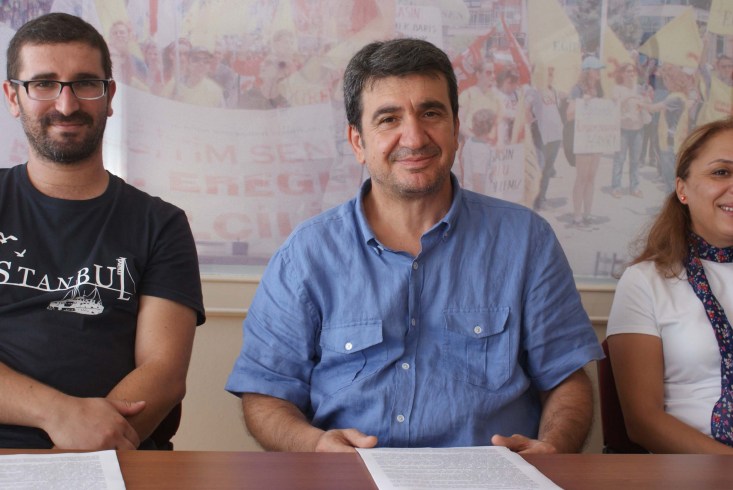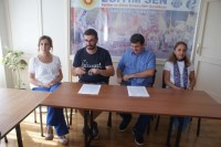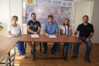 üyeleriyle birlikte sendika lokalinde düzenlediği basın toplantısında, 2014-2015 Eğitim Öğretim Yılı başlangıcı