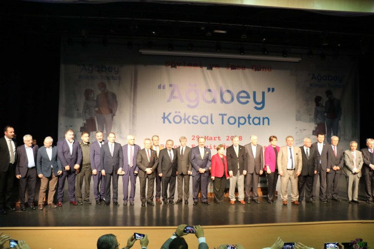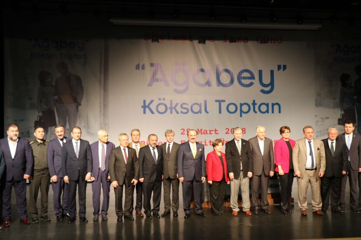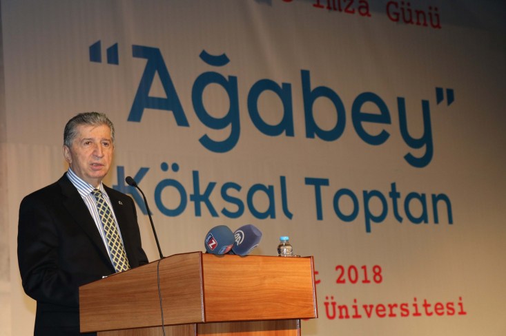 "Bugün Türkiye'mize ve Zonguldak şehrimize uzun süre önemli hizmetler vermiş ve şehrimizin yetiştirmiş olduğu önemli devlet adamlarından ve Ağabey ismini şehrin artık kullandığı Köksal Toptan Ağabeyimizin bir vefa göstergesi olarak üniversitemiz tarafından onun hayatının özetini anlatan kitap vesilesi için hep birlikte buradayız. Köksal Toptan 60 yıllardan bugüne kadar hep siyasetle iç içe olmuş değişik partiler her dönem önemli bir isim olarak kendisini partilerden davet etmişler. Üst görevlerde görev vermişler Türkiye'nin hizmetinde kendisinden faydalanmak istemişler. Bu çok önemli saygı değer bir kişilik olduğunu bizlere gösteriyor. Hem bütün ömür siyasetle geçecek hem de siyaset üstü kişilik kimlik ile topluma mahal olacaksınız bu yönü ile Ağabey ismi kendilerine çokta yakıştı. Bizde Köksal Ağabey diyoruz. Ama Köksal ağabey kitabıyla da daha geniş kitlelere onun hayat hikayesi başarı hikayesi herkese öğretmekte ilan etmekte bu ölümsüzleşmek dediğimiz isim daha yayılır daha bilinir hale gelecektir" dedi.