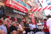 Alaplı Belediye Binası yanında hizmete açılan komagene çiğ köfteci açılışına Alaplı halkı ilgi gösterirken, Ak Parti Zonguldak Milletvekili Faruk Çaturoğlu, Belediye Başkanı Nuri Tekin'in yanı sıra Alaplı halkı katıldı.