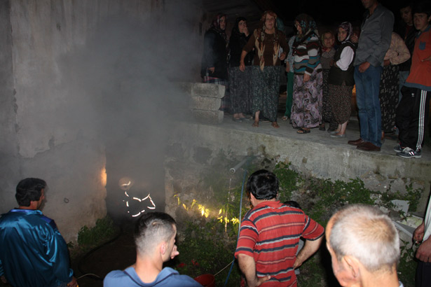 sonrasında ev duman ve alevler içerisinde kaldı. Sahura kalkan köy halkı