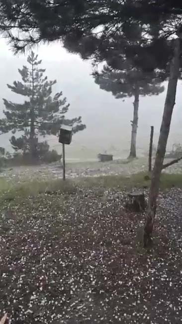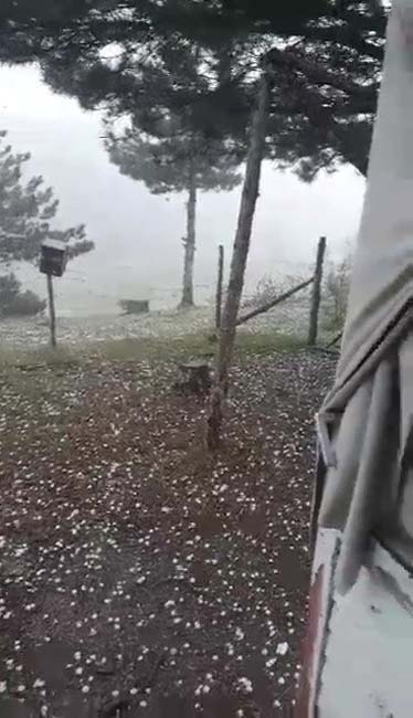 Zonguldak'ın komşu illerinden birine dolu yağdı. Karabük'ün Ovacık ilçesinde etkili olan kısa süreli dolu yağışı ile çevre beyaza bürüdü.