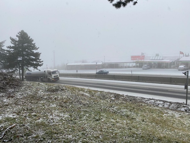 Türkiye’nin önemli geçiş güzergahlarından Bolu Dağı’nda sabah saatlerinde yoğun kar yağışı başladı. Asfalt beyaz örtü ile kaplanırken, ekipler yolu açık tutmak için çalışmalarını sürdürüyor. Yoğun tipi şeklinde devam eden kar yağışı sürücülere zor anlar yaşatıyor.