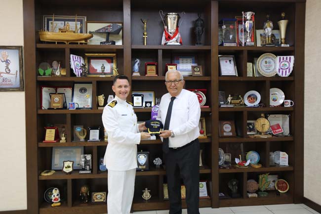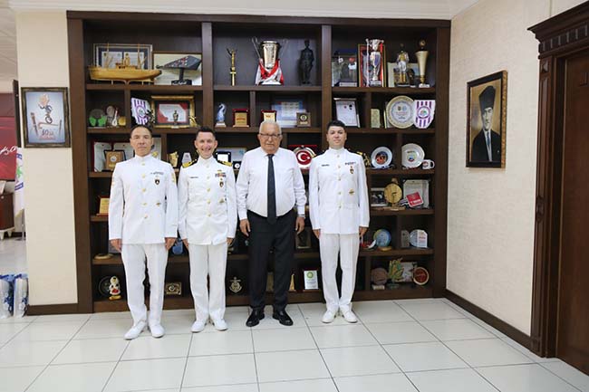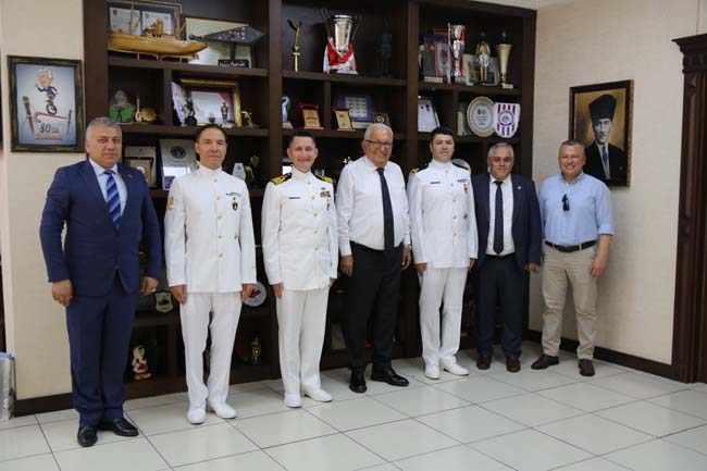 Denizcilik ve Kabotaj Bayramı etkinlikleri kapsamında Ereğli Limanı’na ziyarette bulunan TCG Pirireis (S-330) Denizaltı Gemisi kotumanları Belediye Başkanı Halil Posbıyık’a nezaket ziyaretinde bulundu.