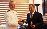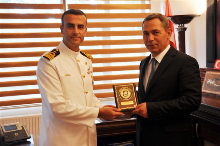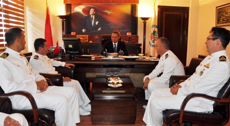 Gemi komutanları ziyaretin anısına Başkan Uysal'a çeşitli hediyeler takdim ederken, karşılıklı görüş-alışverişinde bulunuldu.