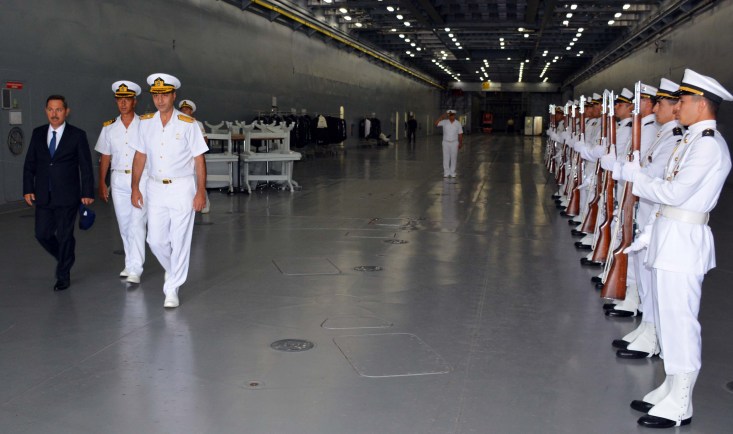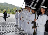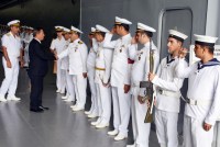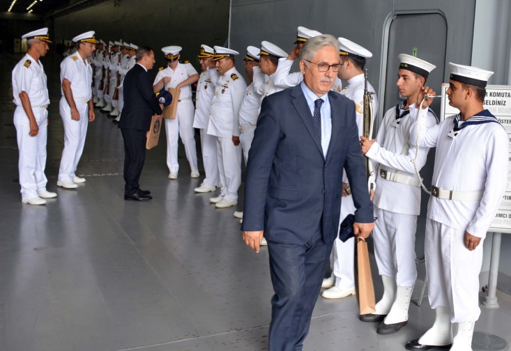 Gemideki yemekte bir araya gelen protokol ve askeri heyete, yüzde 80'i yerli imalatı olan çok amaçlı Bayraktar gemisiyle ülke ve ilçe olarak gurur duyduklarını ifade eden Başkan Uysal, Kaymakam Madenoğlu ile birlikte askeri öğrenciler tarafından törenle uğurlandı.