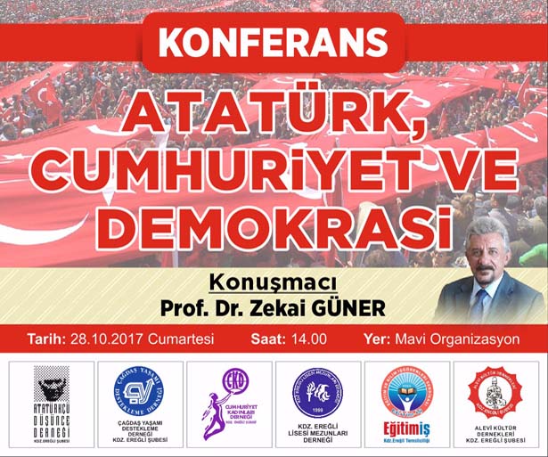 Konuya ilişkin ADD Karadeniz Ereğli Şube Başkanlığından yapılan açıklamaya göre, "Atatürkçü Düşünce Derneği(ADD) Karadeniz Ereğli Şubesi olarak 29 Ekim Cumhuriyet Bayramı'nın 94. yıl kutlamaları çerçevesinde, Çağdaş Yaşamı Destekleme Derneği (ÇYDD), Cumhuriyet Kadınları Derneği(CKD), Karadeniz Ereğli Lisesi Mezunları Derneği, Eğitim İş, Alevi Kültür Derneği ile ortak bir konferans gerçekleştirilecek.