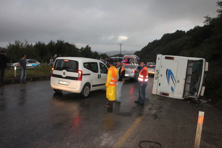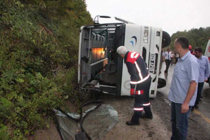 Kazada hafif yaralanan öğrenciler ise 112 ve özel hastane ambulanslarıyla çeşitli hastanelere kaldırıldı. Zonguldak' a öğrenci götüren diğer midibüsün sürücüsü Şerafettin Başdoğan "Bizim sürücü ile yolda karşılaştım. İlk olarak devrilen kamyoneti gördüm. Daha sonra bizim şoför aradı. 'Ağabey ben kaydım kaza yaptım' dedi. Baktım yerde mazot var. Buradan kaç tane de taksi götürdüler. Bu mazot döken kimse tedbir alması gerekirdi. Arabada 27 öğrenci vardı. Ereğli Eğitim Fakültesinden Zonguldak' a konser için gidiyorduk" dedi.