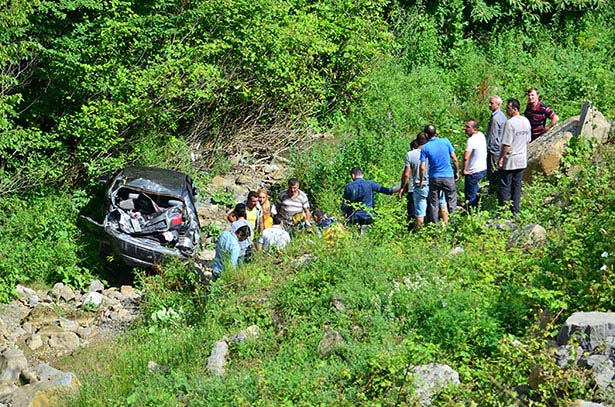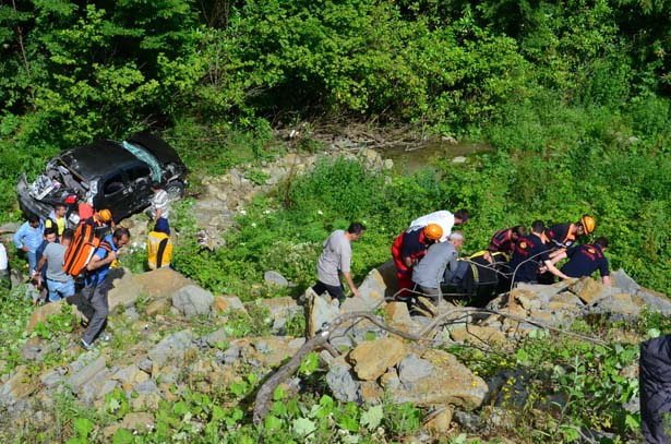 Zonguldak'ta önünde seyreden araca çarpıp kontrolden çıkan otomobil, yaklaşık 30 metreden dereye uçtu. Kazada, araçta bulunan 1'i çocuk 4 kişi yaralandı.