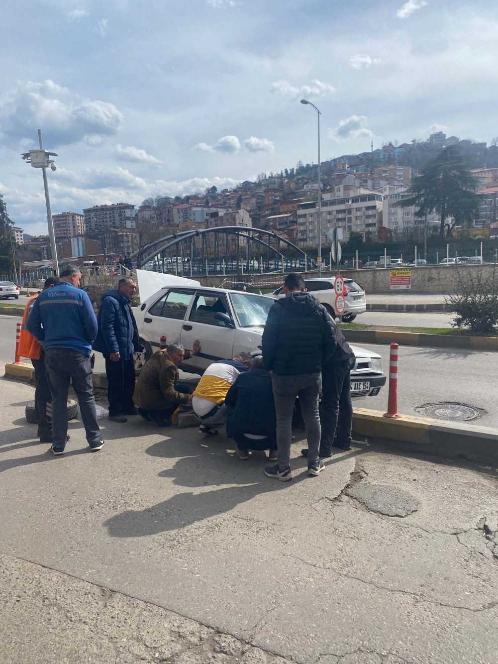 Edinilen bilgiye göre olay öğlen saatlerinde, Mithat paşa Mahallesinde Bülent Ecevit Caddesi üzerinde meydana geldi. İddiaya göre 74 ACC 154 plakalı Tofaş marka otomobil sürücüsünün kontrolünden çıkarak refüje çıktı. Şans eseri kazada yaralanan olmazken, araçta maddi hasar meydana geldi. Olayın ardından araç sürücüsü ve çevredeki vatandaşları araçı çıktığı refüjden yola indirdi.