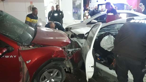 Zonguldak-Alaplı Yalı Kavşağı yolunda kontrolden çıkan otomobil petrol istasyonuna dalarak park halindeki otomobillere çarparak durabildi. Kazada 2 kişi yaralanırken kaza anı kameralara yansıdı.