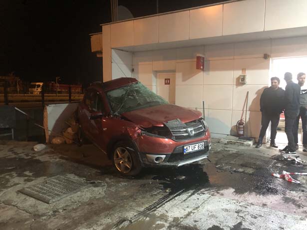 Kontrolden çıktı... Benzin istasyonuna daldı... Yaralılar var...
