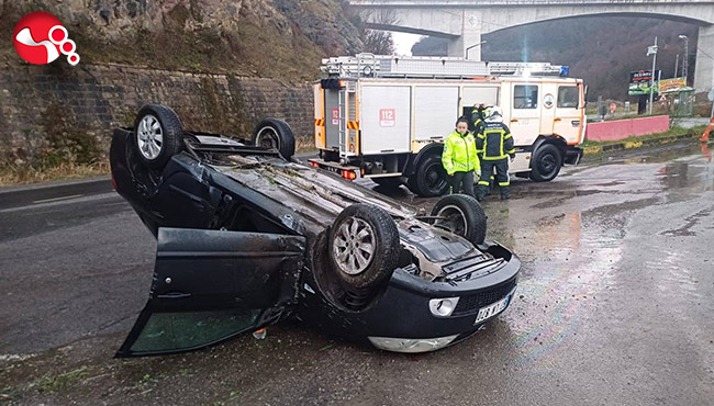 Zonguldak’ın Kozlu ilçesinde meydana gelen kazada araç ters döndü.