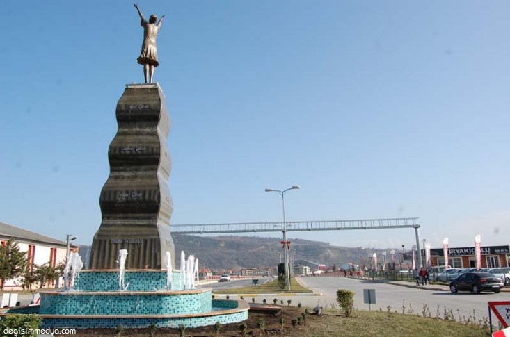 İlçenin girişine yapılan heykelde, heykelin tepesine konan "Yakaran Kadın"