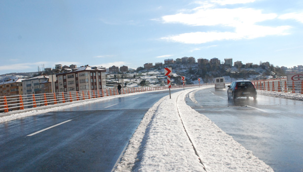 günü araç trafiğine açılan yolda araçlar köprüden geçiş yaparken, Karayoluna uyarıcı levhalarda yerleştirildi.