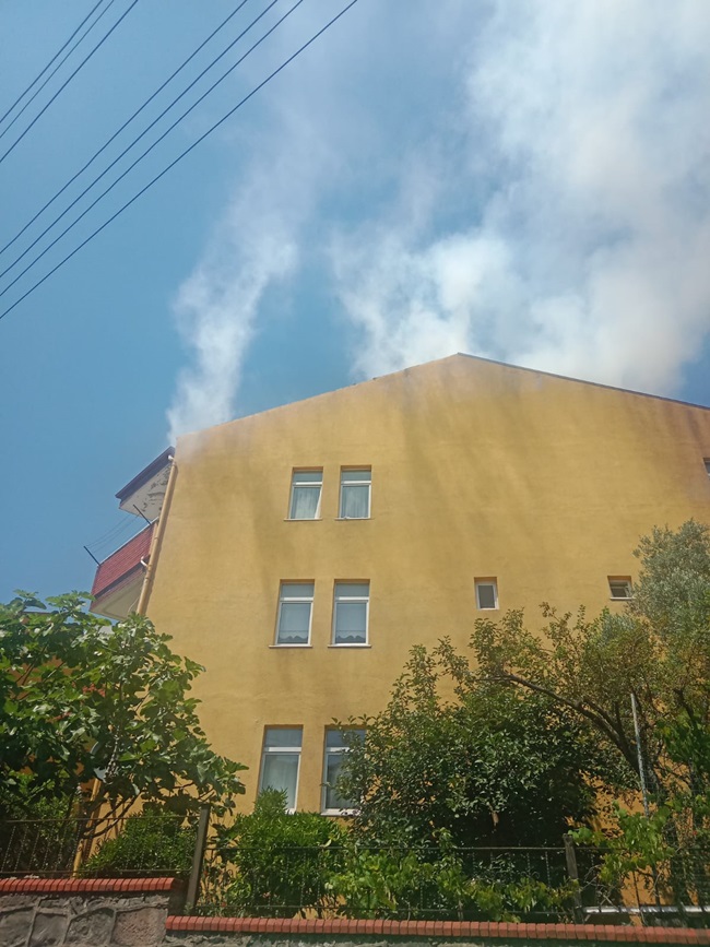 Alınan bilgilere göre; henüz sebebi bilinmeyen bir nedenden dolayı çıkan çatı yangını apartman sakinlerine korku dolu anlar yaşattı. Olayı gören vatandaşlar durumu İtfaiye ekiplerine bildirdi. Kısa sürede olay yerine gelen itfaiye ekipleri daha fazla büyümeden yangını kontrol altına aldı. Yapılan soğutma çalışması ile vatandaşlara yardımcı olan itfaiye ekipleri dumandan etkilenen İsmail U. isimli bir kişiyi sağlık ekiplerine teslim etti. Sağlık ekipleri dumandan etkilenen İsmail U. isimli vatandaşı ambulansa alarak tedavi altına aldı. Yangının sebebi itfaiye ekipleri ve polis ekipleri tarafından yapılan araştırma sonucu aşırı sıcaktan kaynaklandığı üzerinde durulduğu öğrenildi.