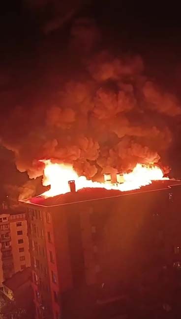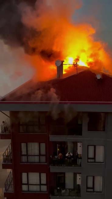Zonguldak'ın Kozlu ilçesinde 13 katlı apartmanın çatısında çıkan yangın paniğe neden oldu.