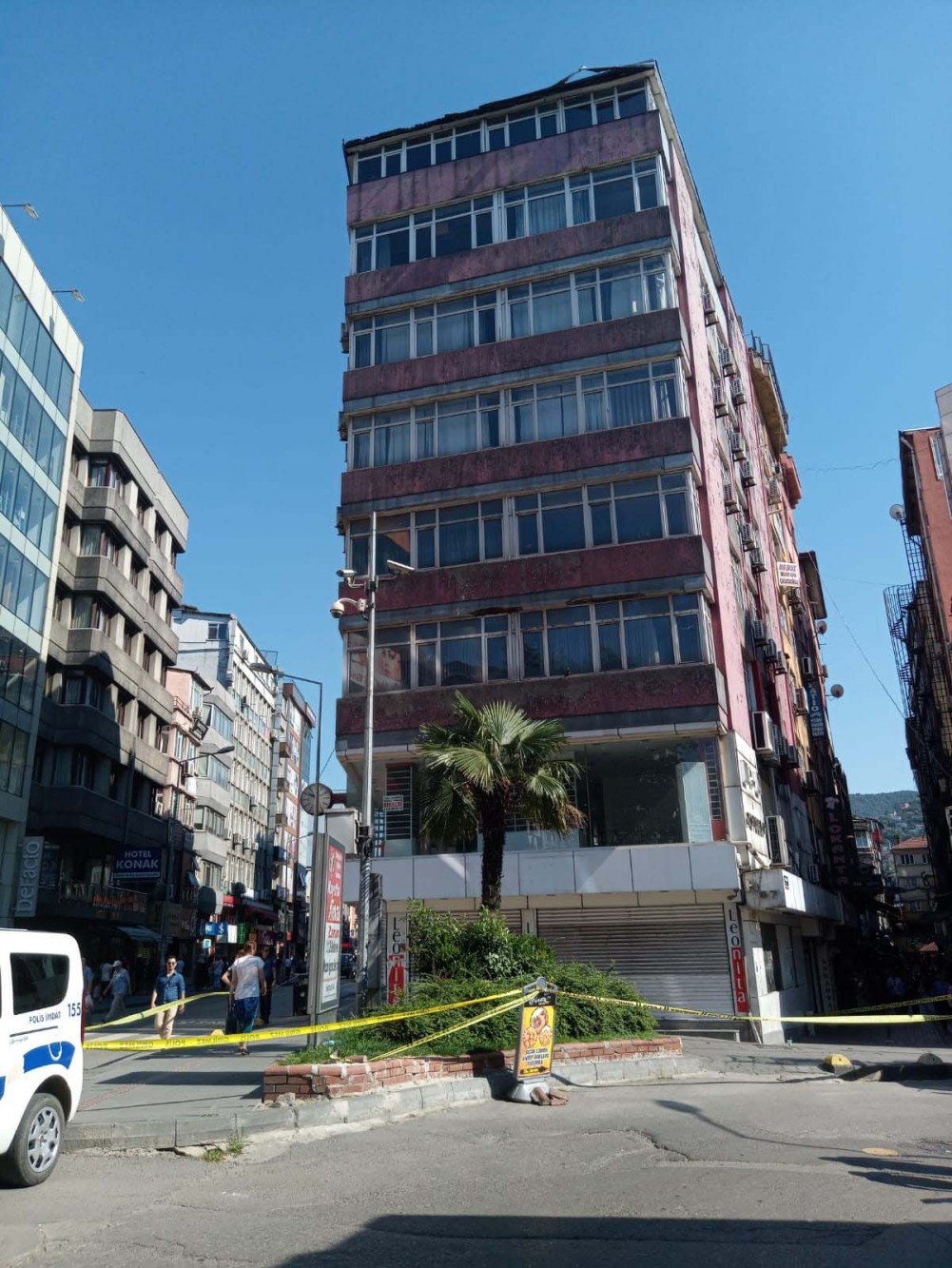 Zonguldak'ta iş hanının çatısından düşen parçalar korku dolu anlar yaşattı.