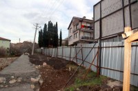 O taş duvar kaldırıldıktan sonra aşağıya göçmeler oldu. Yolun iki metresi gitti