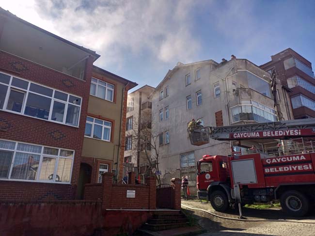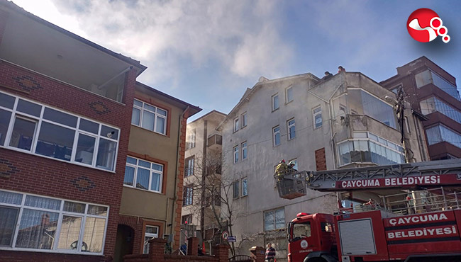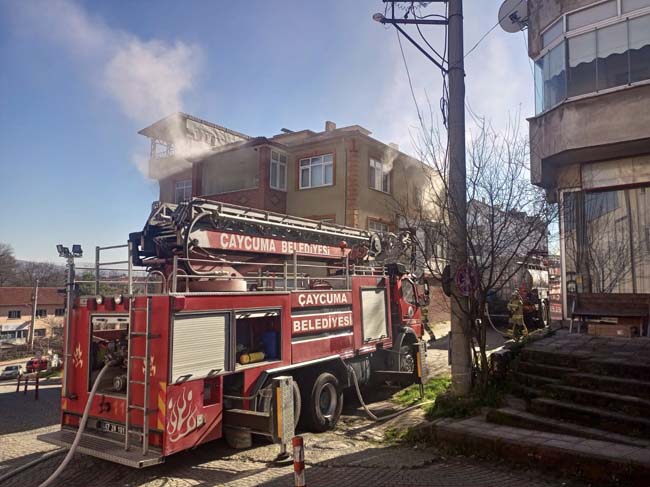 Olay, ilçenin Çay Mahallesi Dr. Sezai Öztürk Sokak üzerinde bulunan Medriye G. isimli vatandaşa ait olan 3 katlı binanın son katında meydana geldi. Dumanların çatıdan yükseldiğini gören çevredeki vatandaşlar durumu Çaycuma Belediyesi İtfaiye Müdürlüğü'ne bağlı ekiplere bildirdi. Olay yerine ayrıca 112 Acil Sağlık ve polis ekipleri de sevk edildi.