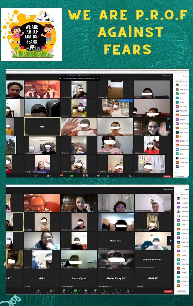 Zonguldak Merkez Bahçelievler İlkokulu’nun kurucu ortağı olduğu, We Are Prof Against Fears (Korkulara Karşı Profesörüz) adlı e-twinning projesinde, 10 Türk ve 8 yabancı öğretmen 6 aydır çalışmalarını sürdürüyor. Zongludak’ı temsil eden Bahçelievler İlkokulu ve Bahçeşehir Koleji İlkokulu ile Iğdır şehrini temsil eden Mevlana İlkokulu öğrencileri, e-twinning projesi kapsamında proje ortağı Polonya, Romanya ve Azerbaycan’daki arkadaşları İle yabancı dillerini kullanarak tanışma toplantısı gerçekleştirdiler.