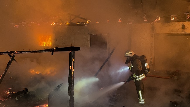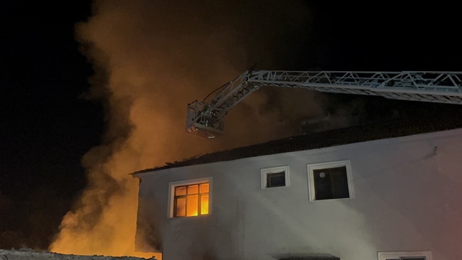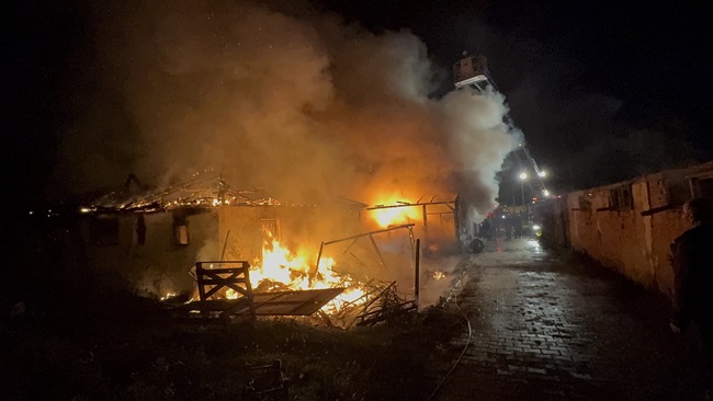 Düzce'de tek katlı evde çıkan yangın, bitişiğindeki 2 katlı eve ve odunluğa sıçradı. Yangın, itfaiye ekiplerince söndürüldü.