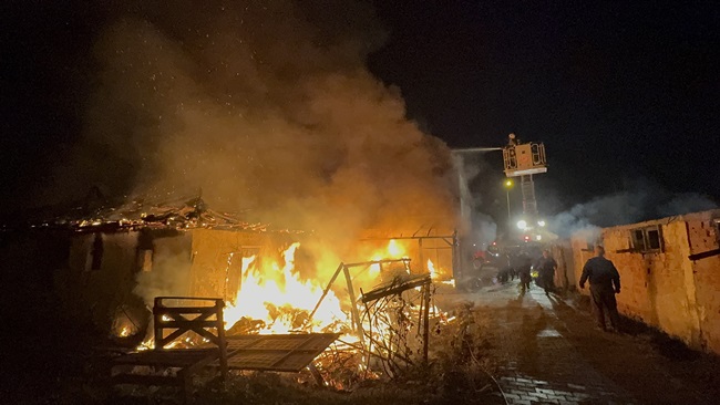 Düzce'de tek katlı evde çıkan yangın, bitişiğindeki 2 katlı eve ve odunluğa sıçradı. Vatandaşların bahçe hortumu ile söndürmeye çalıştığı yangın, itfaiye ekiplerince söndürüldü.